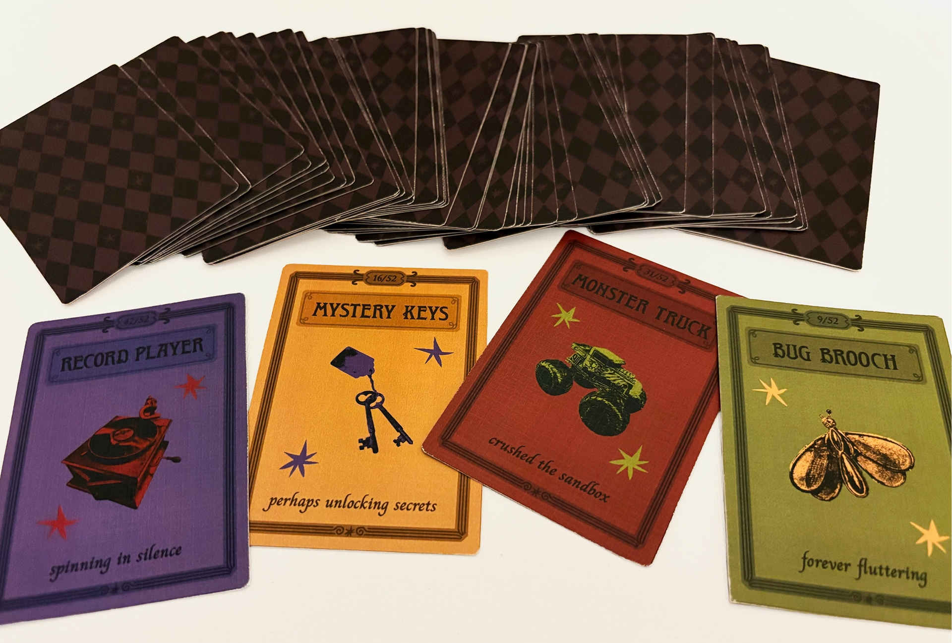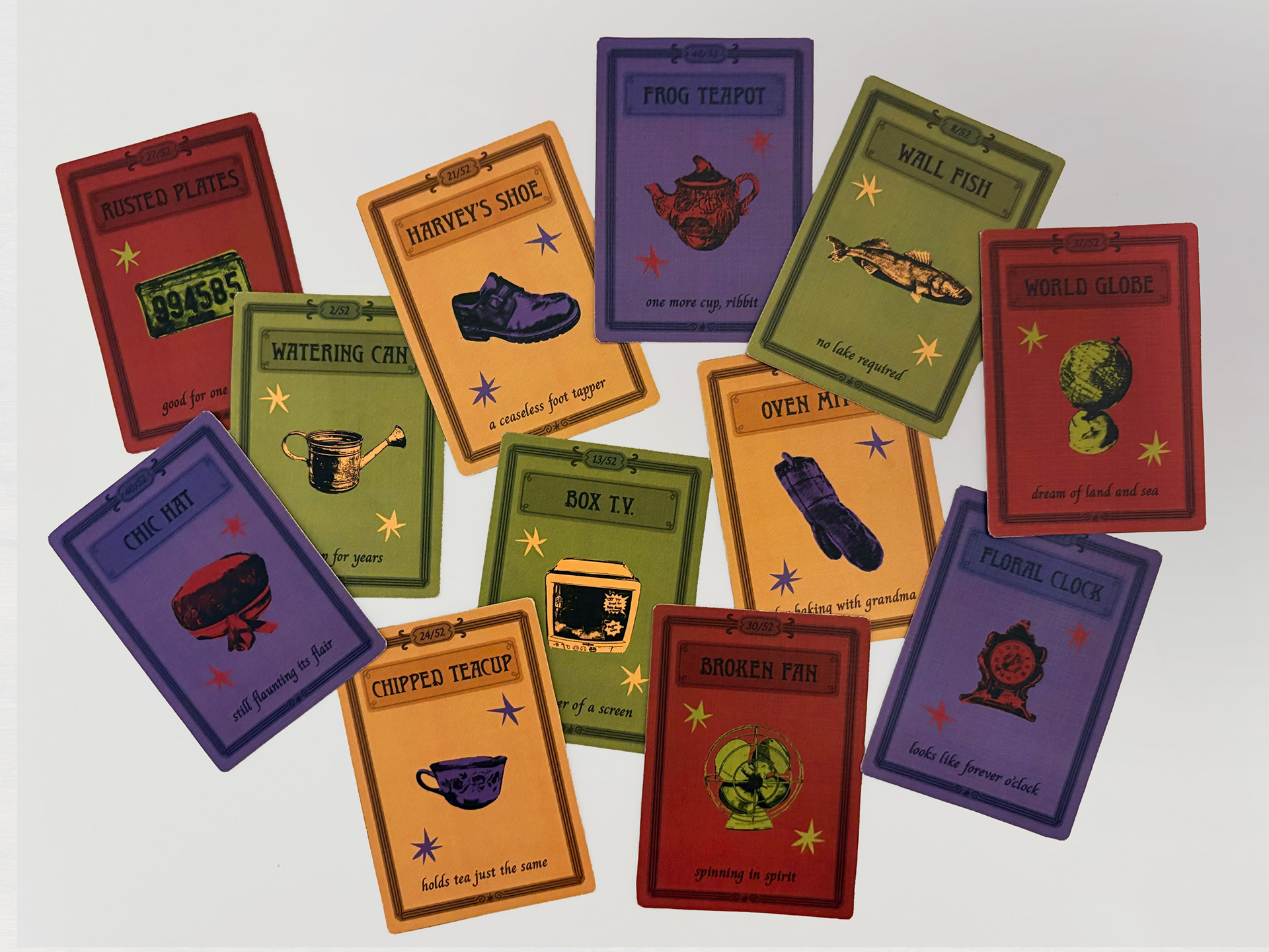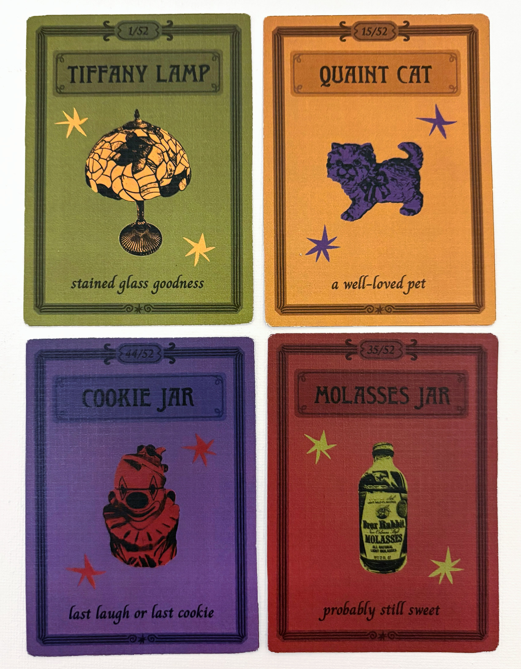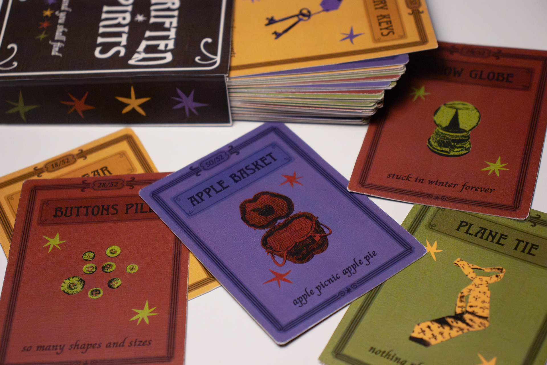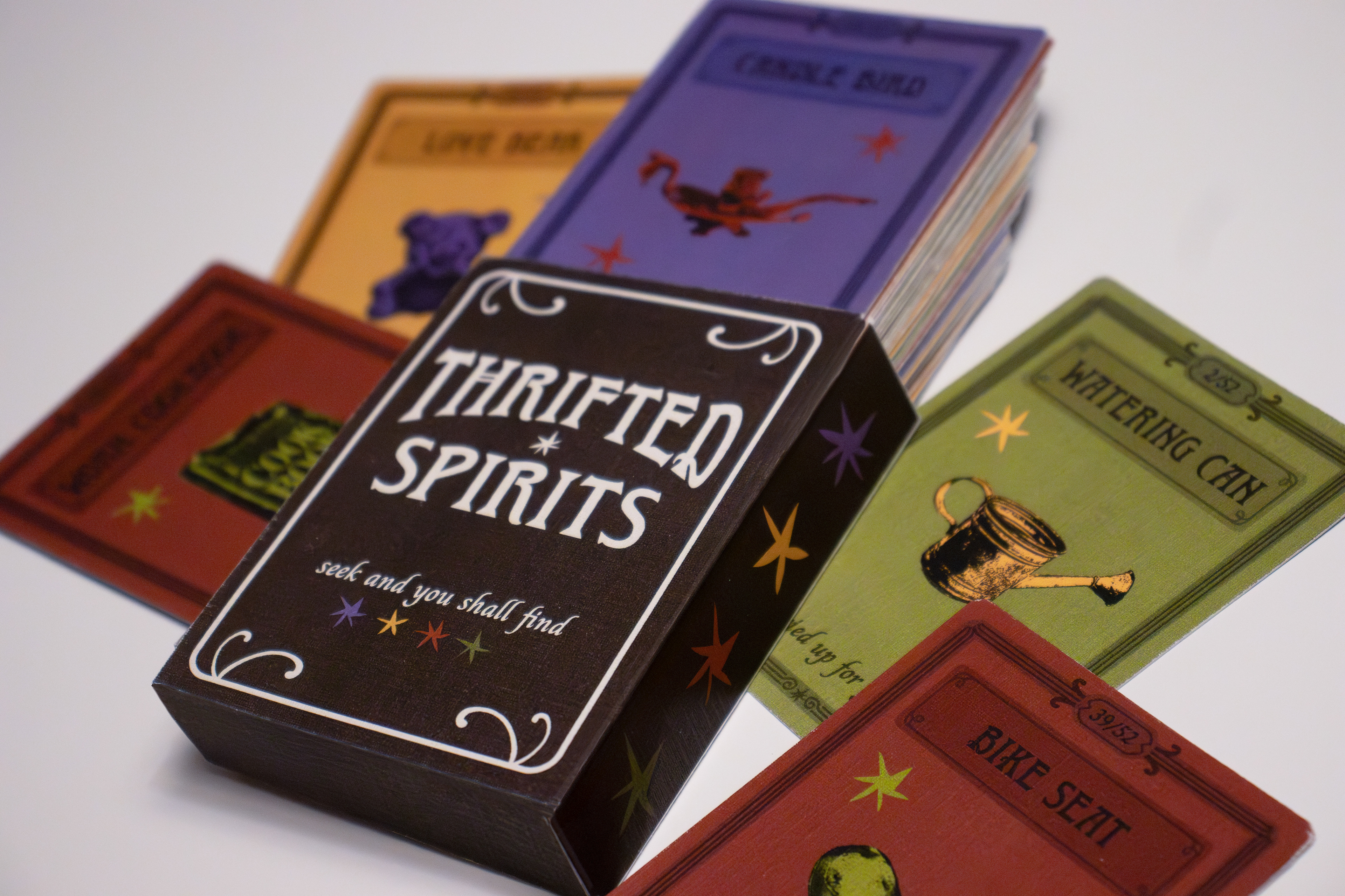 Thrifted Spirits is a collection of cards that explores the wonder of thrifting. Each card displays a unique item from a thrift store paired with an odd little description that gives some insight into the object’s past life. It captures the fever-dream feeling of walking through an antique shop full of random finds and coming across something unexpectedly fantastic.
